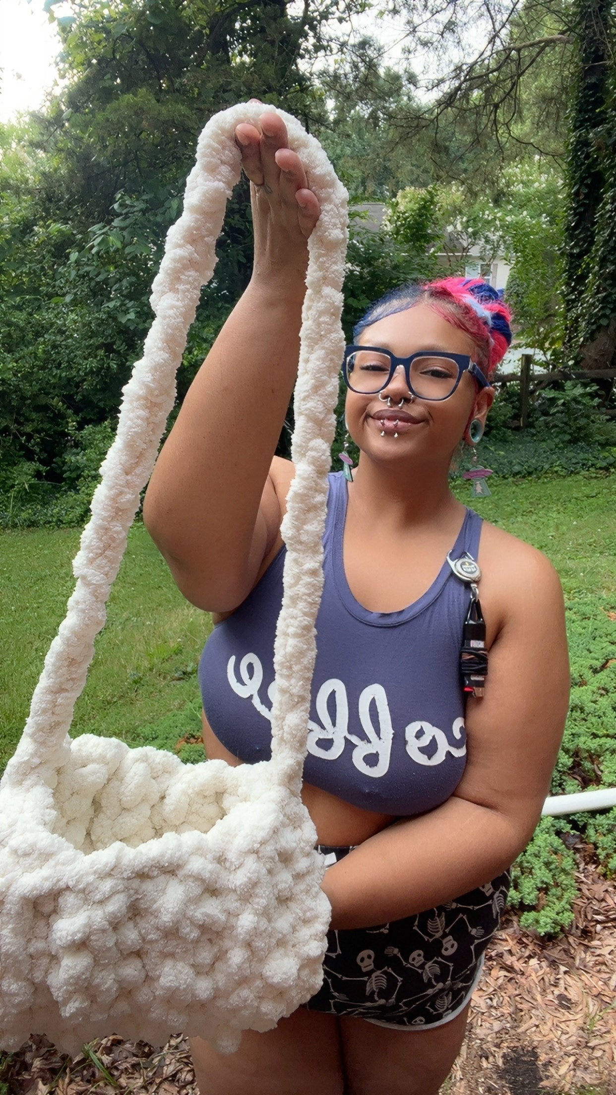 INTRODUCING PURSES! This is the small version and is very compact, cross body handle and yarn soft as EVER! This product can be made in any chunky yarn weight & color(s). Please message the creator after purchasing if you'd like more than one color ♥